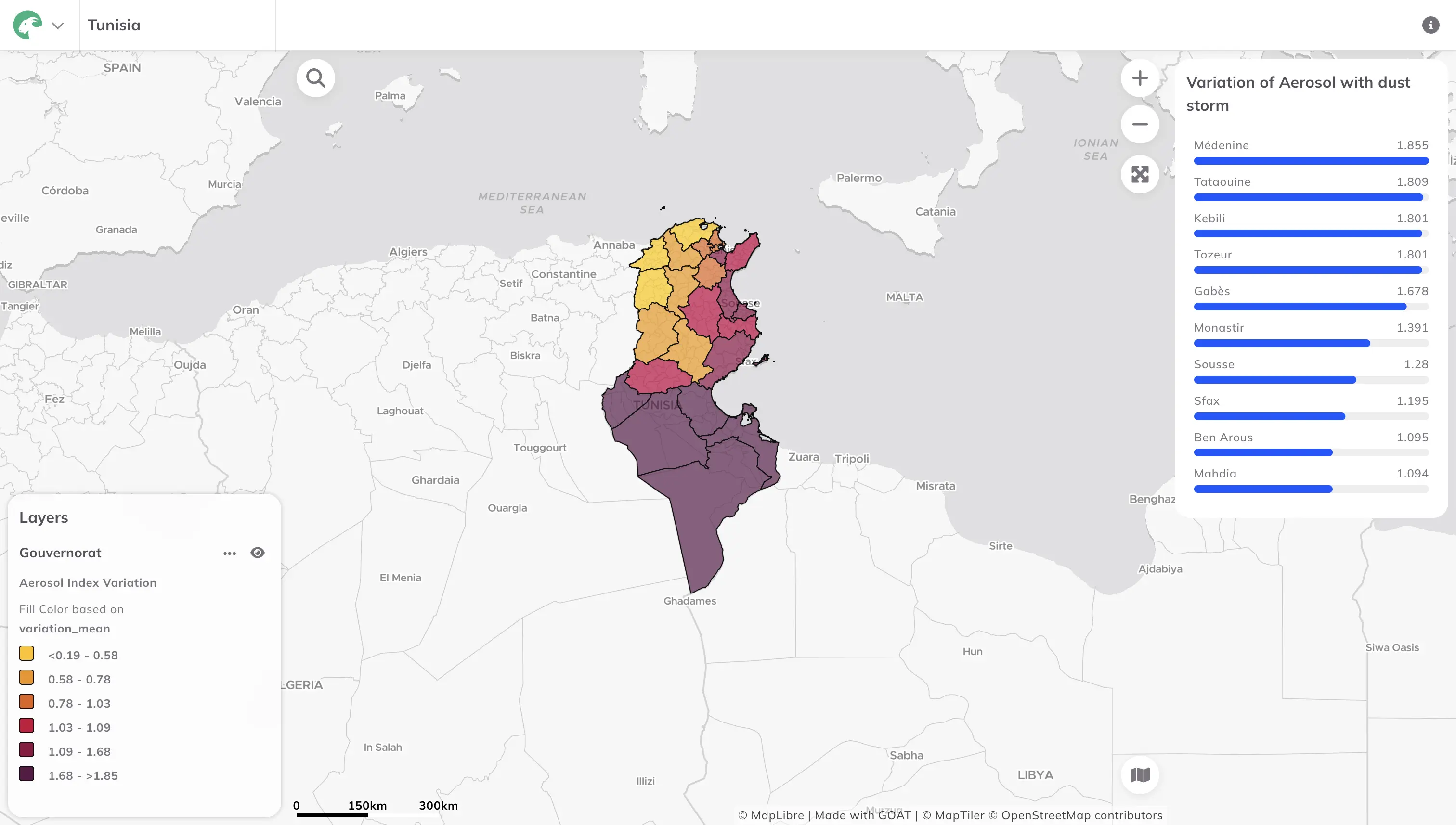 Cyrine used the #30DayMapChallenge to explore climate patterns in Tunisia—her home country—through the lens of earth, air, fire, and water. With Sentinel and Copernicus satellite data, she analyzed:
