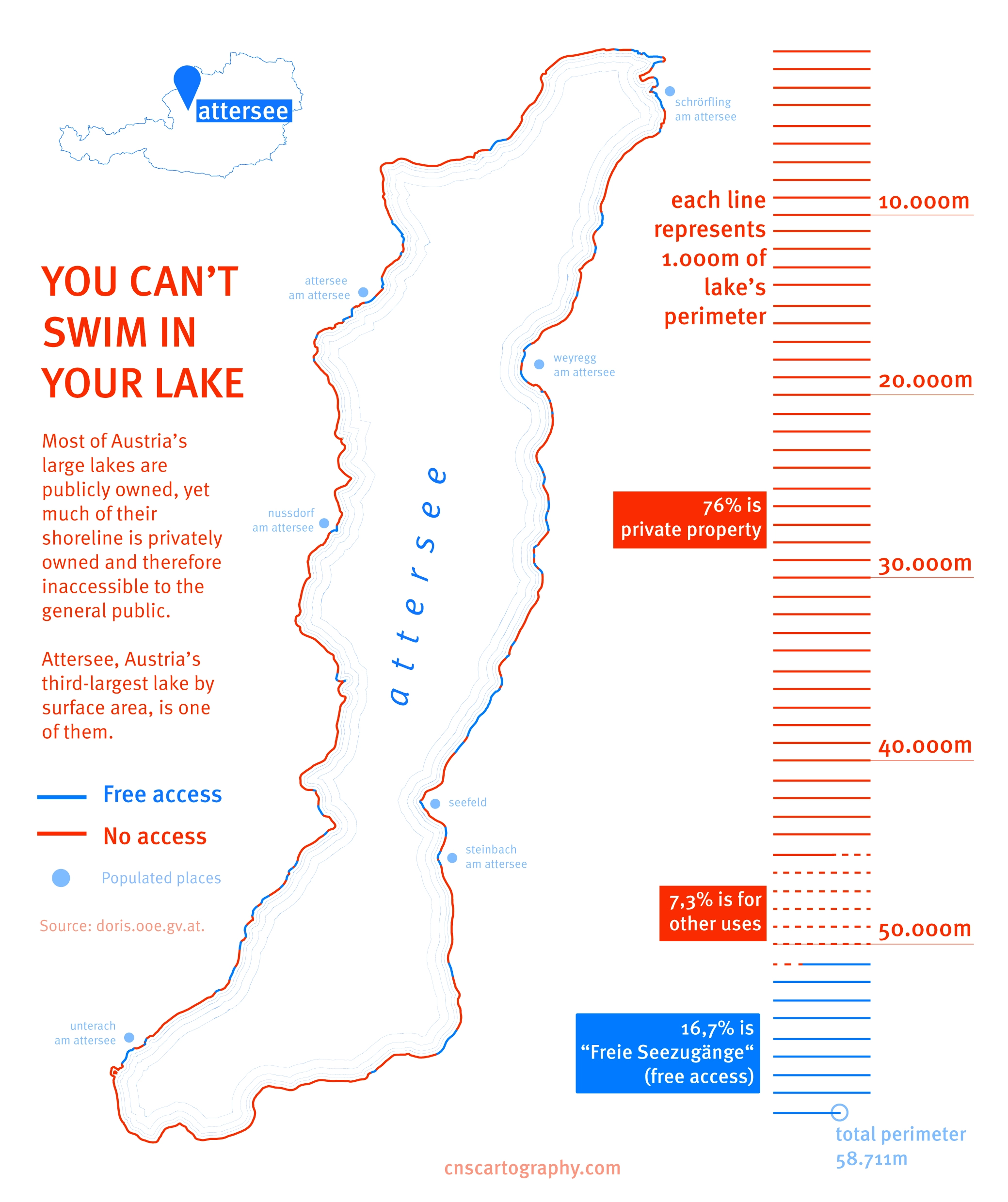 Austrian lakes are public, but their shores? Often private. Camila’s map exposed the pocket beaches, tiny public strips sandwiched between roads and private gardens.