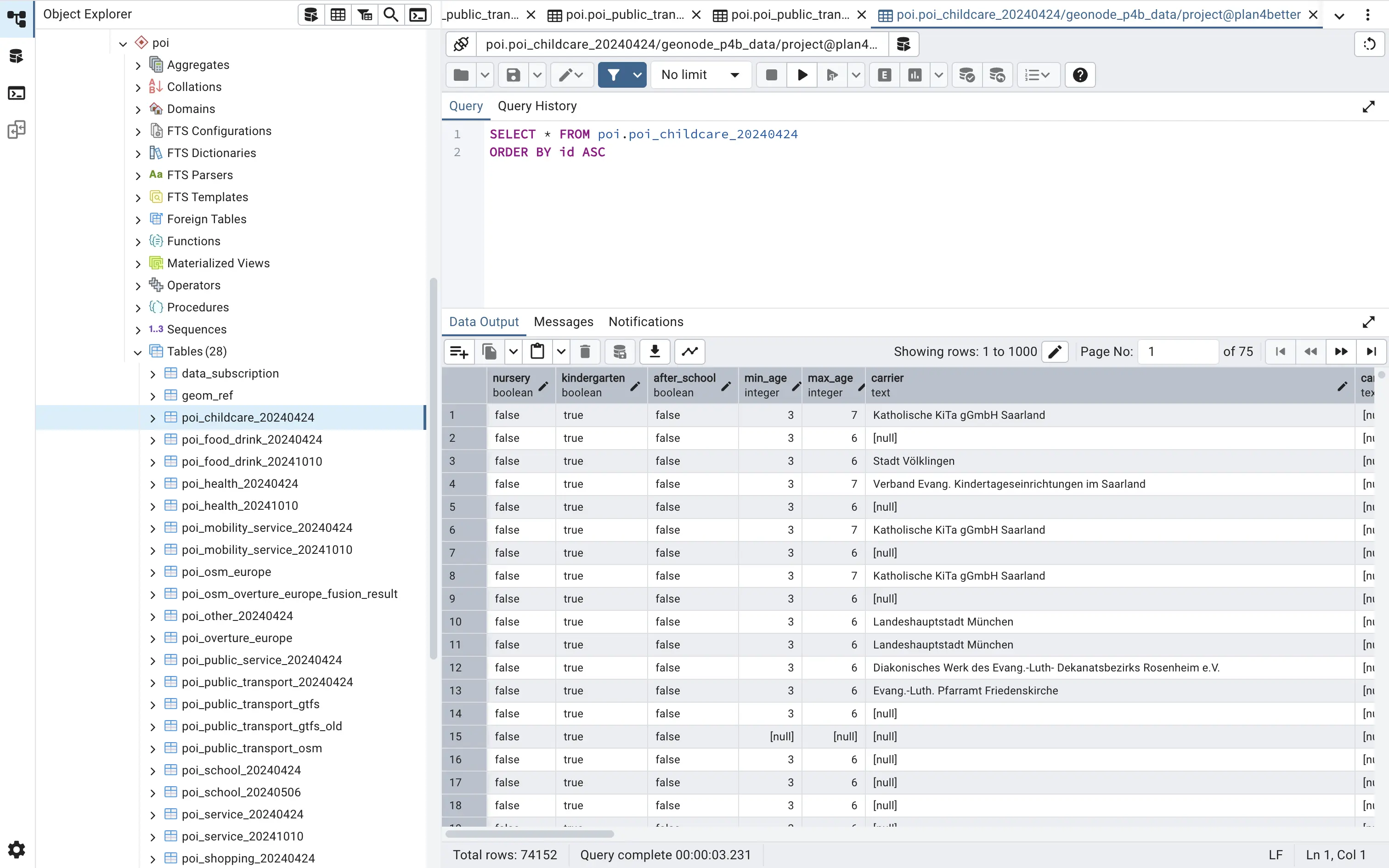 All collected spatial data is then systematically integrated and stored in a central, specially configured PostgreSQL/PostGIS database. Using PostGIS functions, we perform essential spatial operations—such as querying, analyzing, and manipulating geographic data—directly within the database. This approach allows us to efficiently manage and process complex datasets, ensuring high performance and data integrity before we even open QGIS.