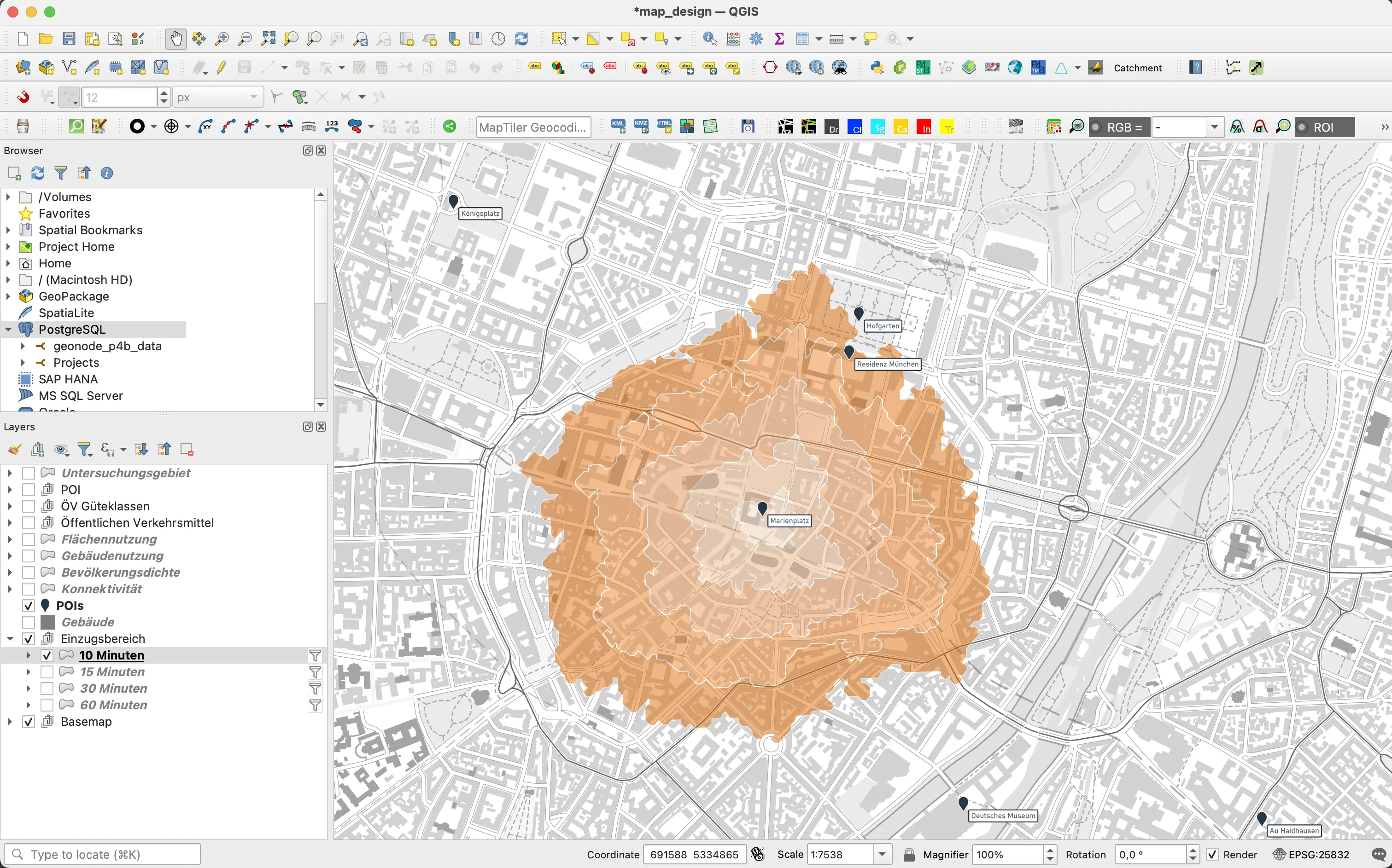 With our data prepared in PostGIS, we connect to it directly within QGIS to perform advanced spatial analyses. To automate repetitive tasks and ensure methodological consistency, we leverage and develop custom PyQGIS scripts and plugins. This automation saves valuable time and reduces the potential for manual error during complex analytical processes.
